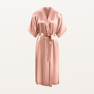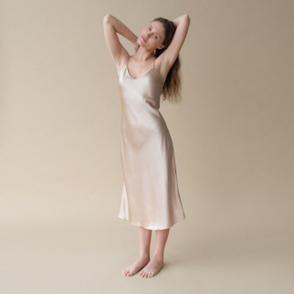 Модель выполнена из 100% органического sandwashed шелкового сатина с замшевым финишем. Этот новый вариант шелка удивляет тактильностью: мягкий, бархатистый на ощупь, он словно укутывает и дарит тепло, сохраняя при этом лёгкость и драпируемость.